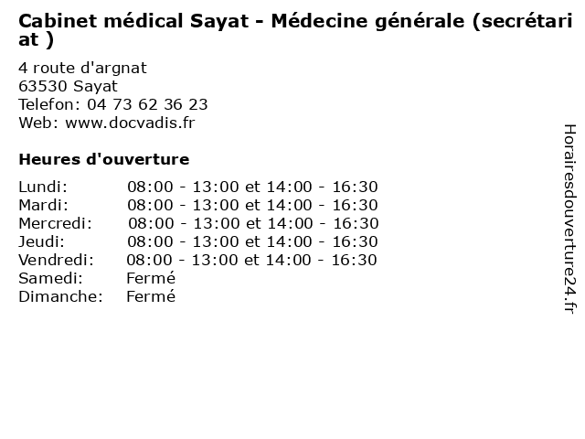 | Mardi | 08:00-13:00 et 14:00-16:30 |