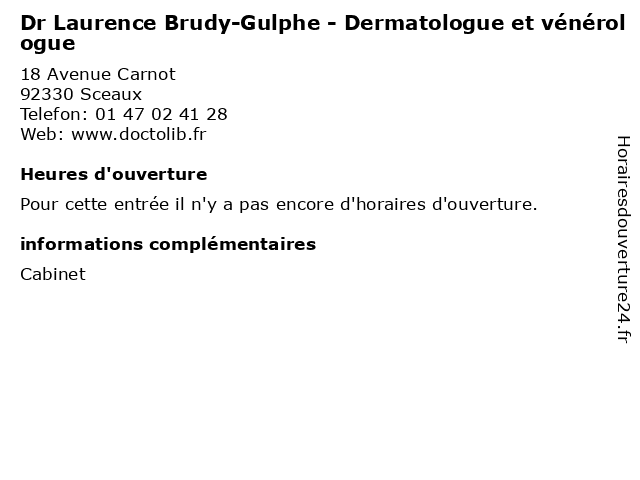 | Appeler Dr Laurence Brudy-Gulphe - Dermatologue et vénérologue | |