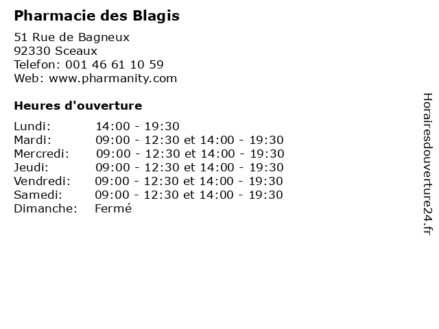 | Samedi | 09:00-12:30 et 14:00-19:30 |