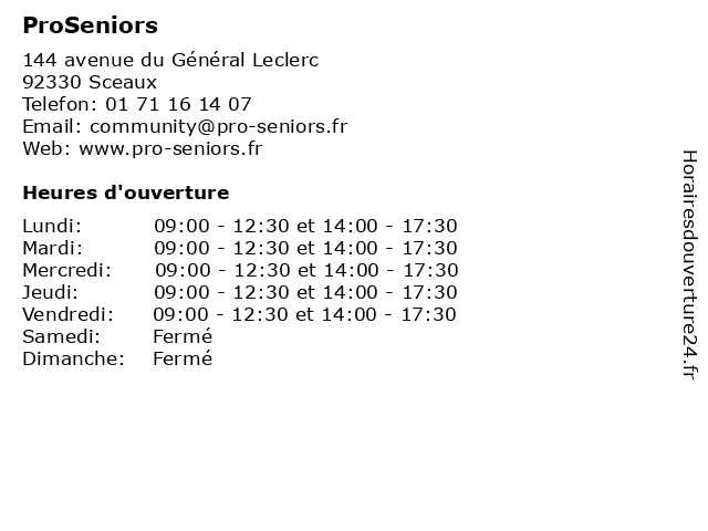 | Lundi | 09:00-12:30 et 14:00-17:30 |