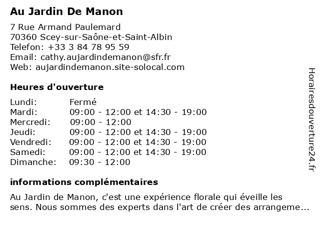 | Lundi | Fermé |