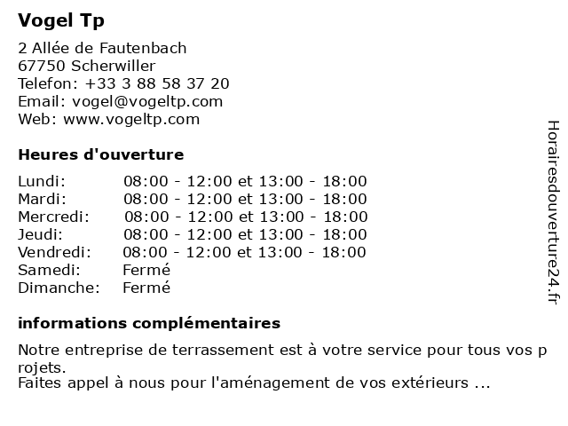 | Vendredi | 08:00-12:00 et 13:00-18:00 |