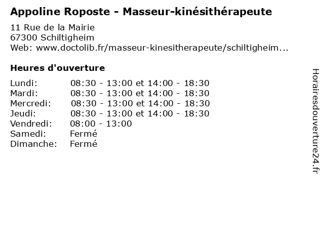 | Mardi | 08:30-13:00 et 14:00-18:30 |
