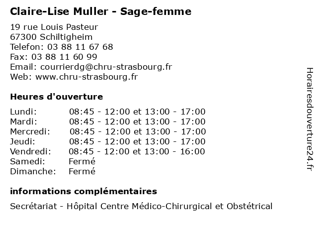 | Lundi | 08:45-12:00 et 13:00-17:00 |