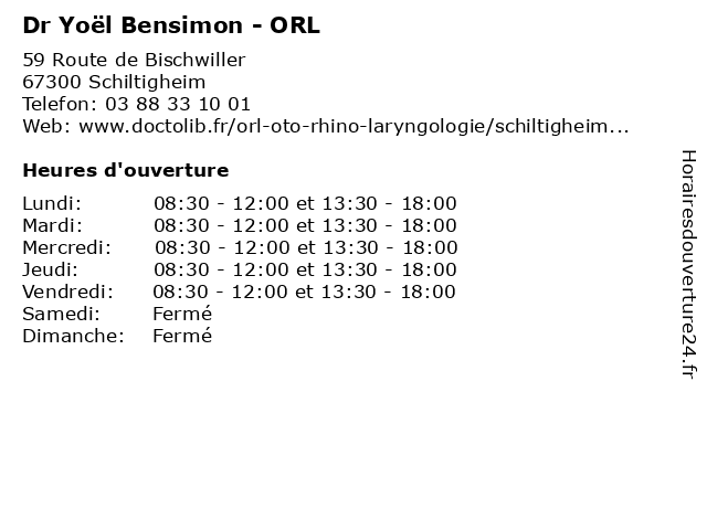 | Lundi | 08:30-12:00 et 13:30-18:00 |