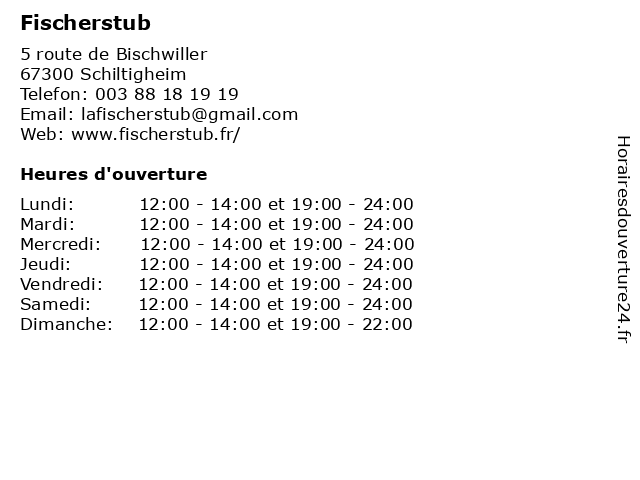 | Dimanche | 12:00-14:00 et 19:00-22:00 |