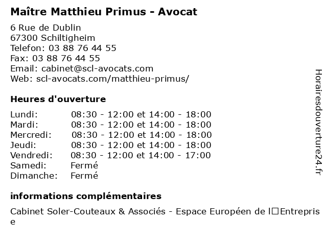 | Lundi | 08:30-12:00 et 14:00-18:00 |