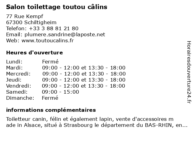 | Mardi | 09:00-12:00 et 13:30-18:00 |