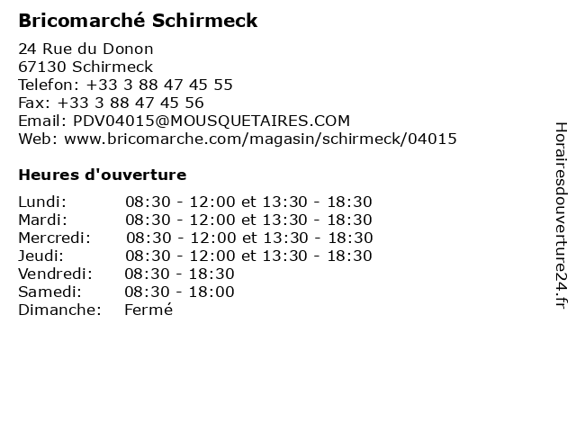 | Lundi | 08:30-12:00 et 13:30-18:30 |