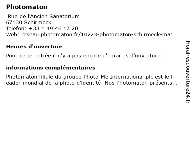 2 Photomaton (Distance: 17,45 km) Rue de l'Ungersberg, 67220 Neuve-Église photomaton