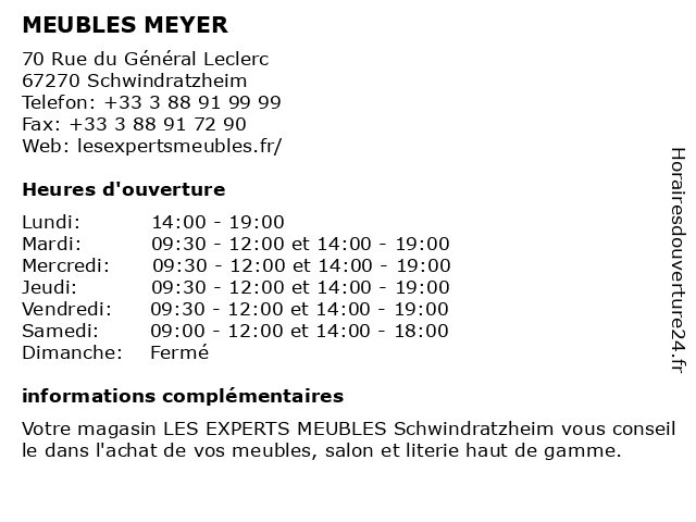 | Mercredi | 09:30-12:00 et 14:00-19:00 |