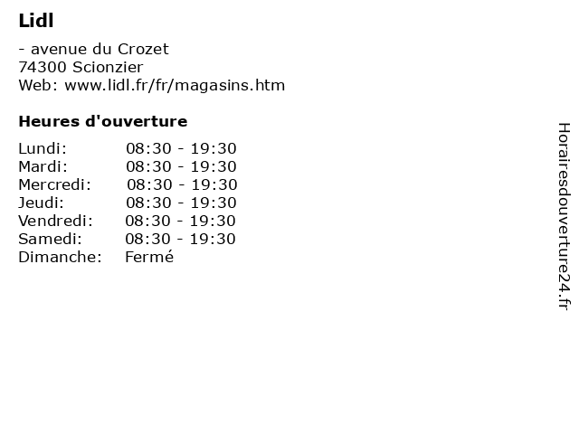 | Lundi | 08:30-19:30 |