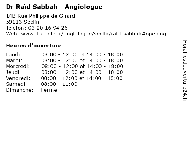 | Lundi | 08:00-12:00 et 14:00-18:00 |