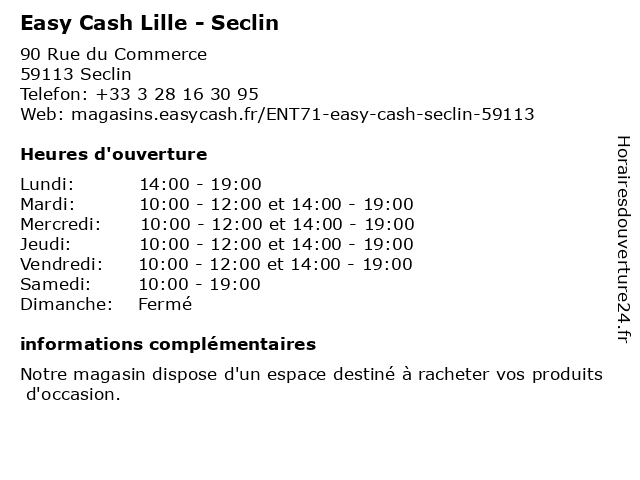 | Jeudi | 10:00-12:00 et 14:00-19:00 |