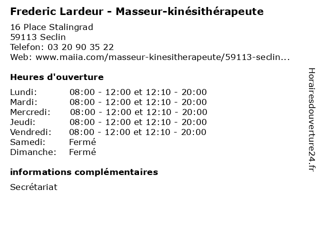 | Mardi | 08:00-12:00 et 12:10-20:00 |
