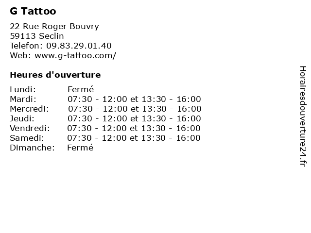 | Samedi | 07:30-12:00 et 13:30-16:00 |