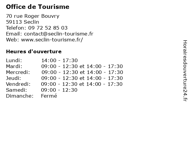 | Mardi | 09:00-12:30 et 14:00-17:30 |