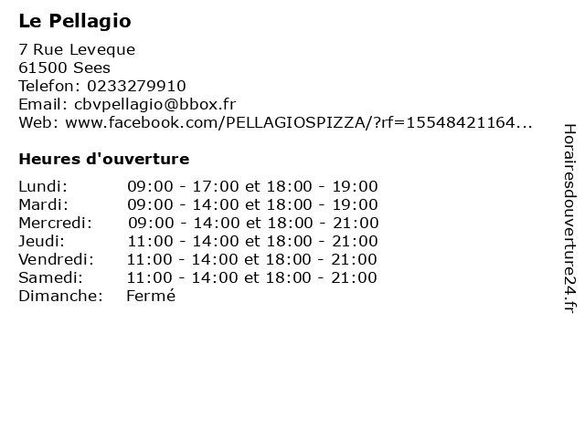 | Lundi | 09:00-17:00 et 18:00-19:00 |