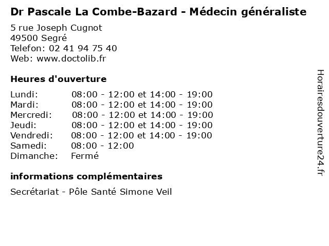 Termes de recherche pour Dr Pascale La Combe-Bazard - Médecin généraliste:la, de, segre, santé, soin, medical, pole, pascale, combe, généraliste, docteur, médecin, dr, bazard |