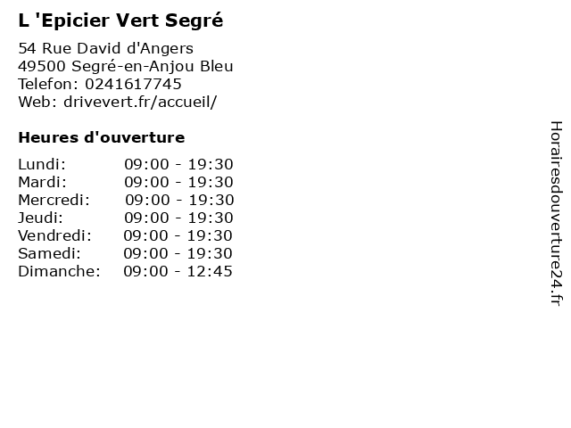 Termes de recherche pour L 'Epicier Vert Segré:segre, vert, alimentation, bio, magasins, superette, epicier, 'epicier |