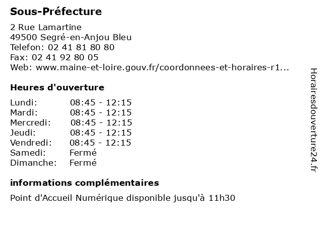 1 Sous-Préfecture (Distance: 20,09 km) 4 Rue de la Petite-Lande, 53200 Château-Gontier administration, assoc, préfecture, services, services publics, sous 2 Préfecture du Maine-et-Loire (Distance: 33,54 km) . place Michel Debré, 49100 Angers administration, assoc, du, et, loire, maine, préfecture, services, services publics 3 4 Sous-Préfecture (Distance: 37,98 km) 14 Rue des Vauzelles, 44110 Châteaubriant administration, prefecture, préfecture, public, sous 5 Sous-Préfecture (Distance: 42,56 km) - Allée de la Providence, 44156 Ancenis administration, assoc, préfecture, services, services publics, sous 6 Promise (Distance: 42,77 km) 62 Boulevard Louis Armand, 53940 Saint-Berthevin berthevin, boutique, lingerie, promise, saint, sous, vêtements |