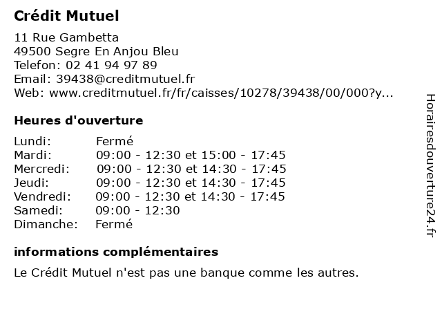 | Mardi | 09:00-12:30 et 15:00-17:45 |