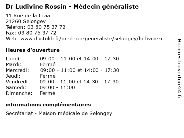 | Mercredi | 09:00-11:00 et 14:00-17:30 |
