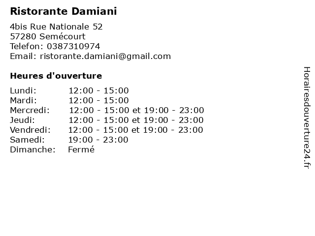| Jeudi | 12:00-15:00 et 19:00-23:00 |