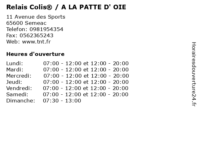 Termes de recherche pour Relais Colis® / A LA PATTE D' OIE:relais, la, d', colis, patte, colis®, services postaux et de livraison, oie |