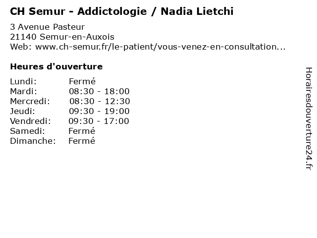 Termes de recherche pour CH Semur - Addictologie / Nadia Lietchi:bureau, med, medecine, maladie, semur, ch, traitement, médecin, consultation, nadia, dr, pratique, therapie, addictologie, lietchi |
