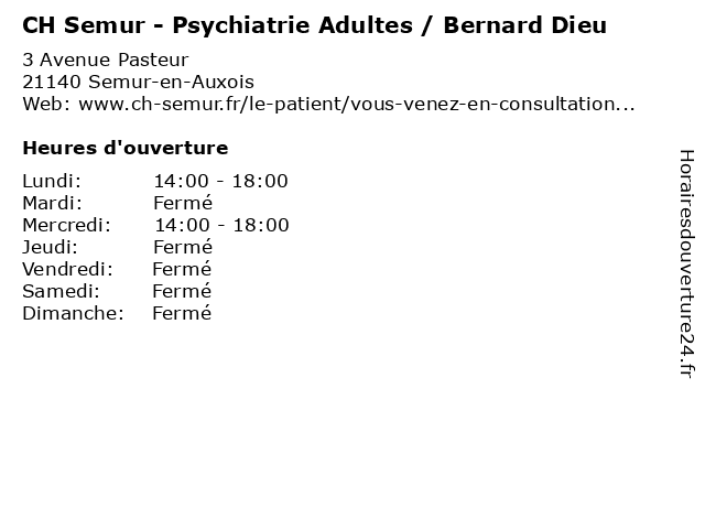 | Mercredi | 14:00-18:00 |