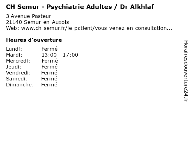 Termes de recherche pour CH Semur - Psychiatrie Adultes / Dr Alkhlaf:bureau, med, medecine, maladie, semur, ch, traitement, médecin, adultes, consultation, dr, psychiatrie, pratique, therapie, alkhlaf |