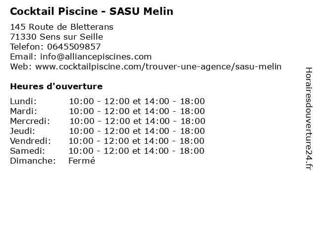| Mercredi | 10:00-12:00 et 14:00-18:00 |