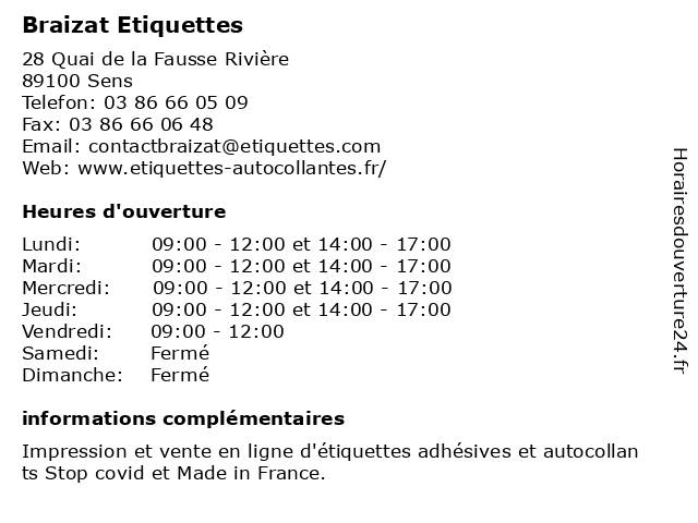 | Samedi | Fermé |