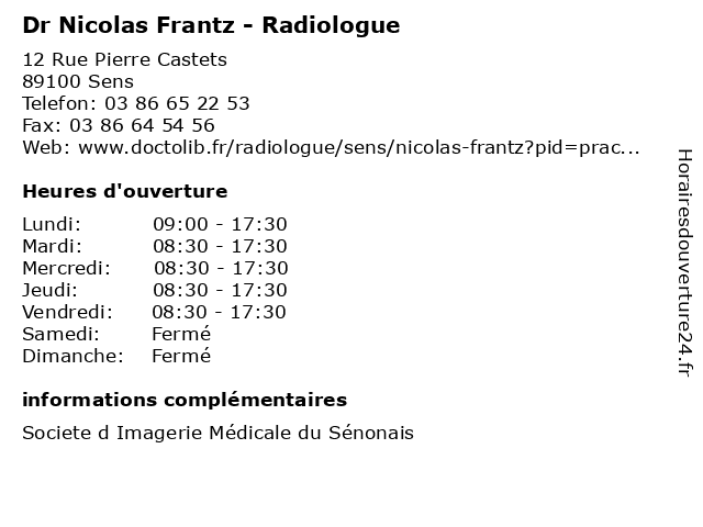 1 Dr Jean-Michel Nicolas - Médecin généraliste (Distance: 1,00 km) 20 Bis Rue Victor Guichard, 89100 Sens dr, généraliste, généraux, jean, michel, médecin, nicolas, soins 2 Maître Nicolas Deiller - Avocat (Distance: 1,19 km) 18 Rue du Général Leclerc, 89100 Sens avocat, avocats, cabinet, conseils, contentieux, deiller, juridique, justice, litiges, maître, nicolas, services 3 Nicolas Multi Services89 (Distance: 1,24 km) 22 Rue du Général Leclerc, 89100 Saint-Clément multi, nicolas, services89 4 Nicolas Sens (Distance: 1,47 km) 99 Grande Rue, 89100 Sens champagnes, cidre, nicolas, rhums, rosé, ruinart, sens, spiritueux, vins, vins blancs, vins rouges, whiskies 6 Dr Mohamed Korribi - Chirurgien urologue - secrétariat (Distance: 0,00 km) 12 Rue Pierre Castets, 89100 Sens chirurgien, chirurgien urologue, dr, korribi, mohamed, médecins, médicaments, santé, secrétariat, spécialiste, urologue |