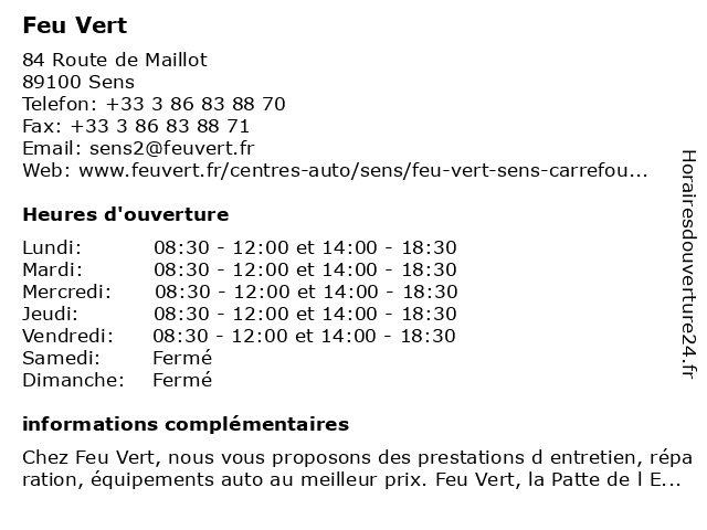 | Mercredi | 08:30-12:00 et 14:00-18:30 |