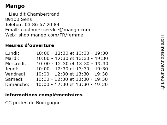 | Dimanche | 10:00-12:30 et 13:30-19:30 |