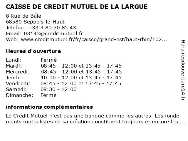 Termes de recherche pour CAISSE DE CREDIT MUTUEL DE LA LARGUE:la, de, crédit, mutuel, caisse, largue |