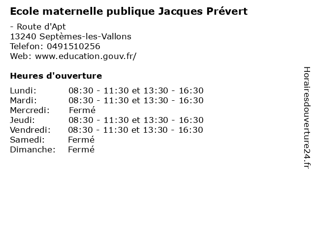 | Mardi | 08:30-11:30 et 13:30-16:30 |