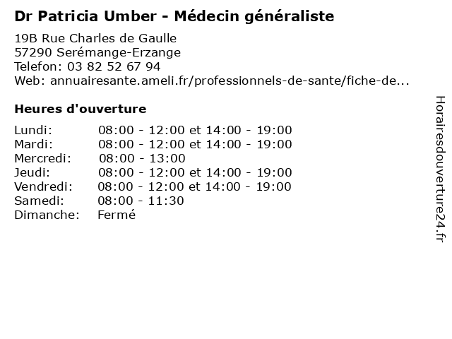 | Lundi | 08:00-12:00 et 14:00-19:00 |
