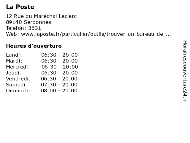 1 La Poste (Distance: 2,58 km) 38 Rue Charles de Gaulle, 89140 Michery agence, colis, courriers, expédition, la, postale, poste, relais 2 La Poste (Distance: 3,51 km) 2 place de la Mairie, 89140 Courlon-sur-Yonne agence, colis, courriers, expédition, la, postale, poste, relais 4 La Poste (Distance: 5,63 km) 1 Place de l'Eglise, 89340 Villeblevin agence, colis, courriers, expédition, la, postale, poste, relais 5 La Poste (Distance: 5,69 km) 1 bis place de la Mairie, 89340 Champigny agence, colis, courriers, expédition, la, postale, poste, relais 6 La Poste (Distance: 6,29 km) 1 Rue Pasteur, 89140 Vinneuf agence, colis, courriers, expédition, la, postale, poste, relais |
