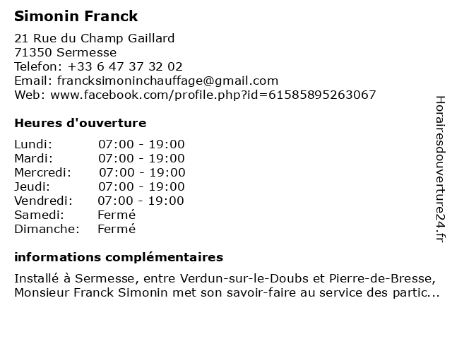 | Samedi | Fermé |