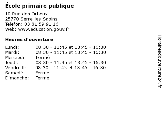 | Mardi | 08:30-11:45 et 13:45-16:30 |