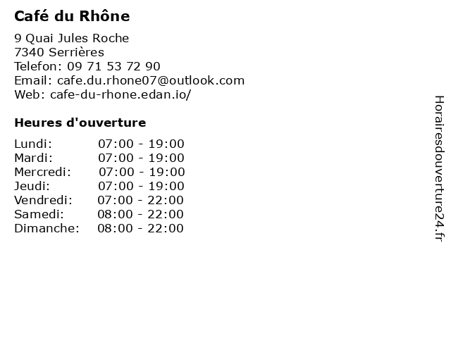 | Lundi | 07:00-19:00 |