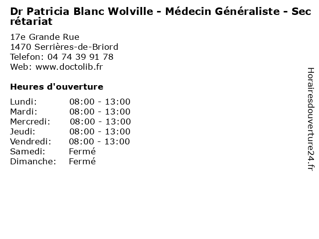 Termes de recherche pour Dr Patricia Blanc Wolville - Médecin Généraliste - Secrétariat:blanc, générale, medecine, santé, soin, patricia, secretariat, généraliste, médecin, consultation, dr, pédiatre, wolville |