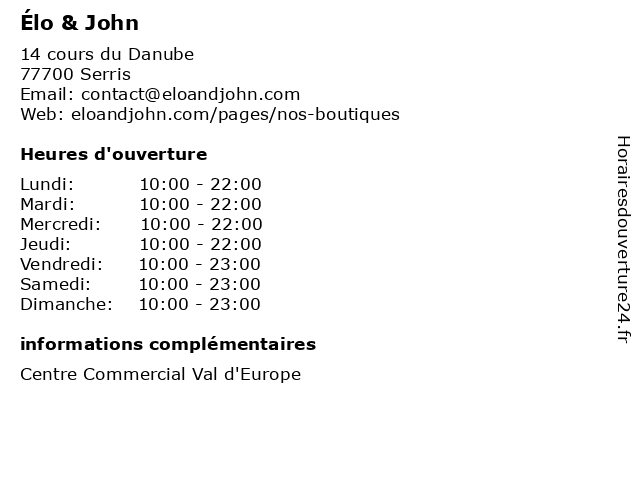 1 Élo & John (Distance: 1,72 km) 2 avenue Paul Séramy, 77700 Chessy accessoires, john, lunettes, magasins, mode, opticien, élo 2 Karl Marc John (Distance: 13,88 km) 5 bis Rue du Grand Cerf, 77100 Meaux boutique, femme, habillement, john, karl, marc, mode 3 John Lemon Bar (Distance: 14,29 km) 153 bis rue du Faubourg Saint Nicolas, 77100 Meaux alcool, bar, cocktail, john, lemon, musique 4 Dr John-David Rebibo - Chirurgien urologue (Distance: 19,59 km) 4 Avenue Marx Dormoy, 94500 Champigny-sur-Marne chirurgie, chirurgien, david, docteur, dr, john, rebibo, urologue 5 Karl Marc John (Distance: 30,14 km) 10 Rue de Turenne, 75004 Paris boutique, femme, habillement, john, karl, marc, mode 6 Karl Marc John (Distance: 32,11 km) 4 Rue Des Abbesses, 75018 Paris chaussures, enfants, femme, john, karl, marc, mode |