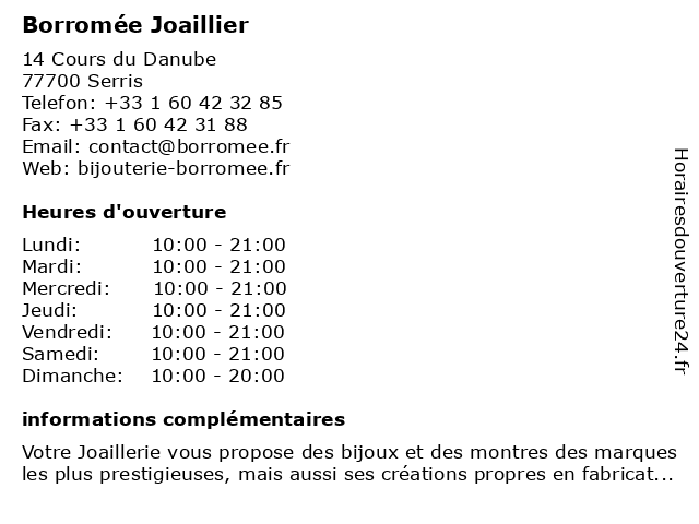 | Samedi | 10:00-21:00 |