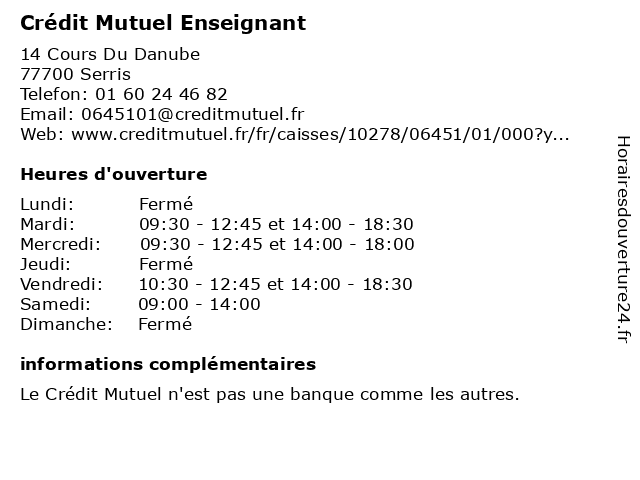 | Mercredi | 09:30-12:45 et 14:00-18:00 |