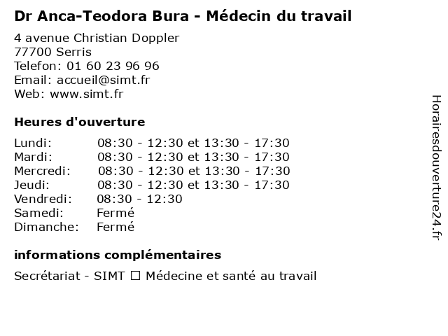 | Lundi | 08:30-12:30 et 13:30-17:30 |