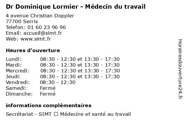 | Lundi | 08:30-12:30 et 13:30-17:30 |